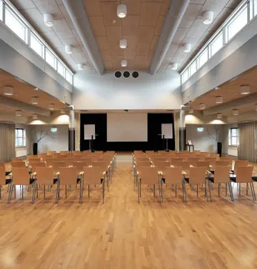 Vi har två större möteslokaler där vi kan ta upp till 150 mötesdeltagare. Lokalerna används till alltifrån seminarier till årsmöten. Vår vackra entréhall bjuder också möjligheter till större arrangemang som mässor och andra event.